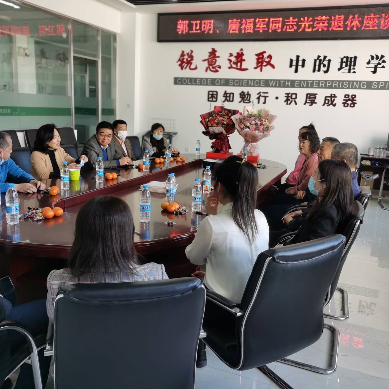 4月27日,77779193永利官网工会为郭卫明、唐福军两位同志举行了光荣退休的座谈会,会上学院领导、各系部主任、教师代表相继发言并送上了祝福,77779193永利官网工会为两位老教师准备了荣退纪念品。