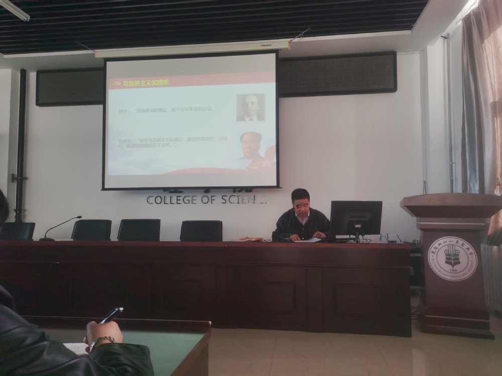 党总支书记高峰以《学习科学理论的必要性》为题讲授专题党课,重点从马克思主义实践观、科学理论指导实践的功能、用习近平新时代中国特色社会主义思想指导新时代民族复兴伟大实践、习近平新时代中国特色社会主义思想主题教育的重要意义等四个方面进行了深入讲解。他强调,要不断加强政治理论的学习,增强“四个意识”、坚定“四个自信”、做到“两个维护”,始终在思想上政治上行动上同党中央保持高度一致,要实干担当促进发展,立德树人,教好书育好人,培养社会主义建设需要的合格人才,为学校高质量发展作出应有贡献。