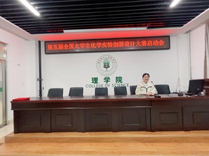 应用化学专业赵觅老师对第五届全国大学生化学实验创新大赛情况进行介绍。本次竞赛旨在为大学生提供一个化学实验数字化设计展示与交流的平台,推动化学实验数字化设计和应用,促进人工智能 AI 等数字化手段与化学实验教学的交叉融合,提高化学实验数字化设计水平。