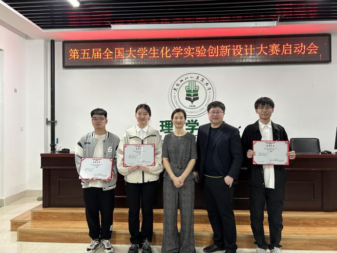曹丽丽主任对第四节届获奖参赛队伍进行颁奖,2021级应用化学专业李天明、李哲、张旭三名学生进行比赛经验分享。