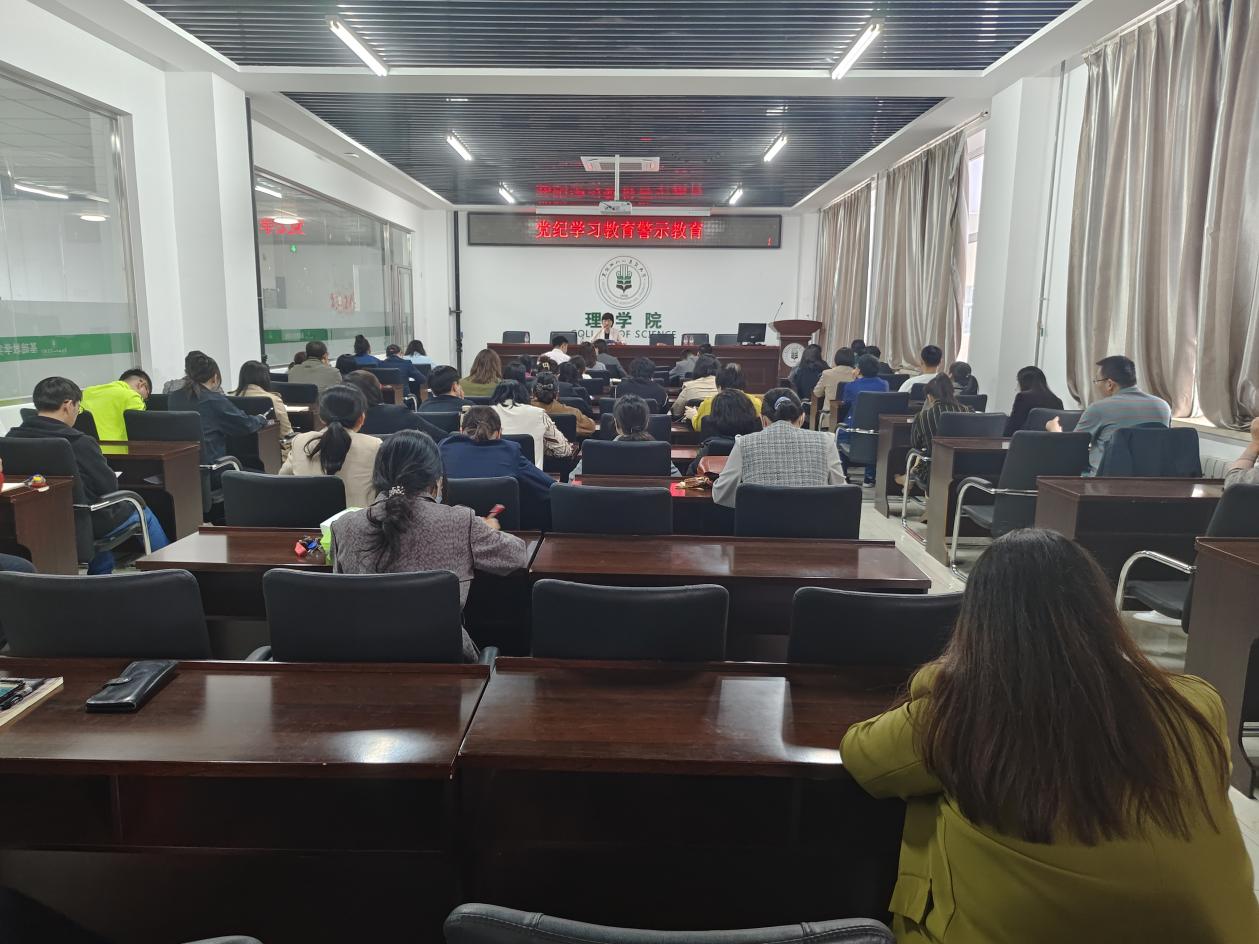 5月11日下午,77779193永利官网在基础实验楼620室召开“以加强党纪学习,深化以案为鉴”为主题的党纪学习教育警示教育会,旨在深入学习和贯彻修订后的《中国共产党纪律处分条例》,全体教职工参会。