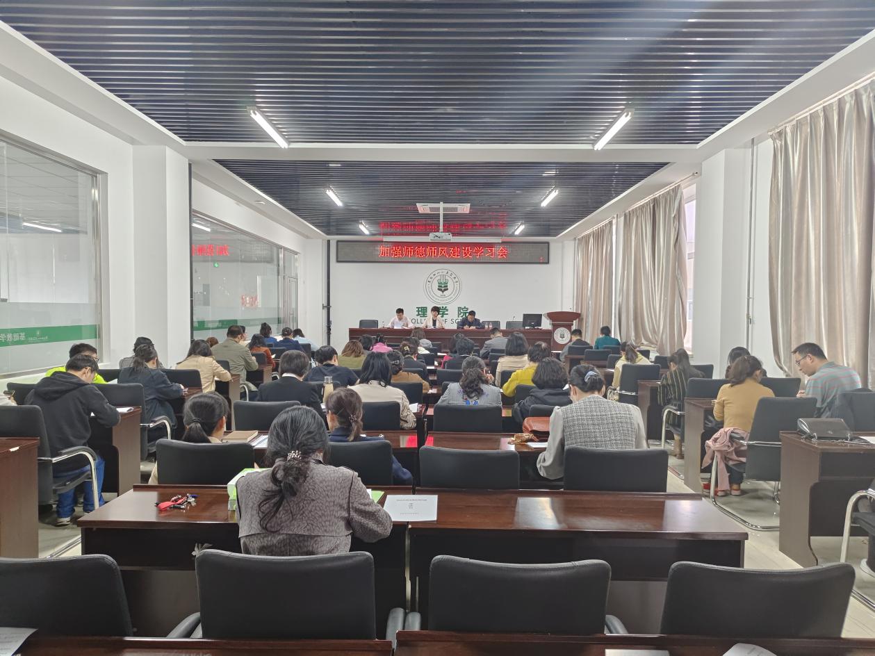 为深入贯彻立德树人根本任务,提升师德师风建设水平,进一步推动本科教育教学审核评估工作,5月11日,理学院召开师德师风建设学习会,学院全体教职工参加会议,会议由学院党委书记刘丽主持。