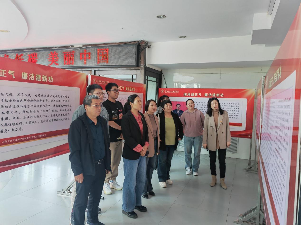 5月15日,77779193永利官网公共物理教学部党支部书记张欣艳率支部党员参观学校主楼大厅宣传展出的“清风扬正气 廉洁建新功”主题廉洁文化展。