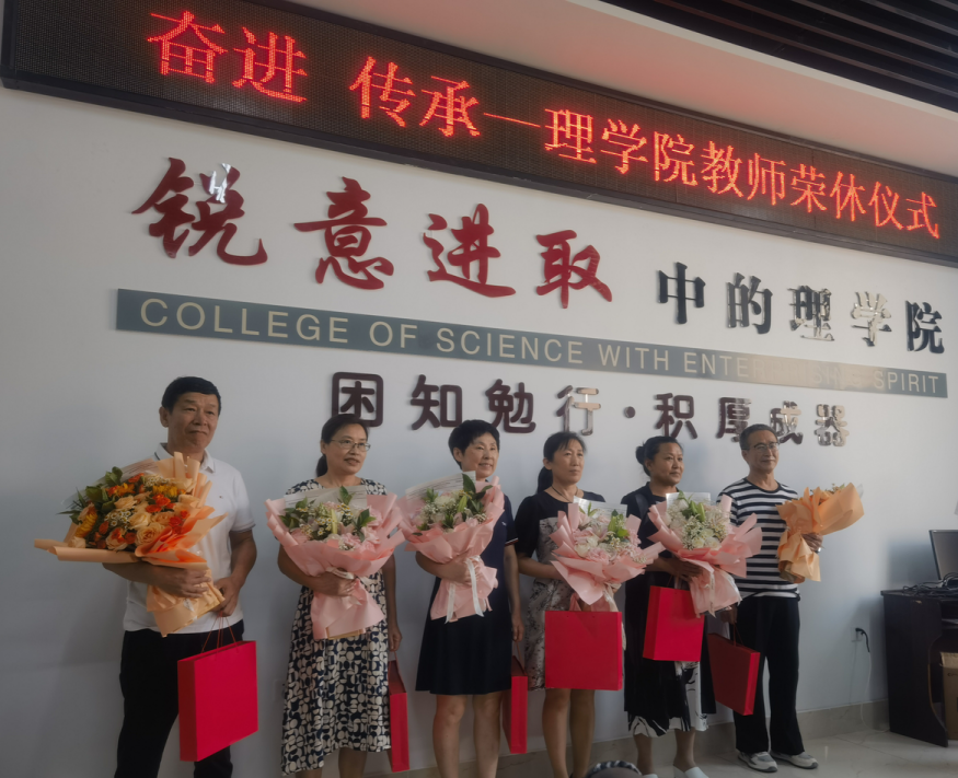 六位退休教师分别发言分享了从教几十年来的一些心得和感悟,表达了对学院和教师岗位的不舍,表示“进了理学门就是理学人”,情到深处在座人员眼含热泪。荣休教师也对年轻教师分享了一些教学经验,将万千感慨和千言万语化作感恩和祝福,祝福学院再攀高峰、再创辉煌,全体教工生活幸福美满,身体健健康康。