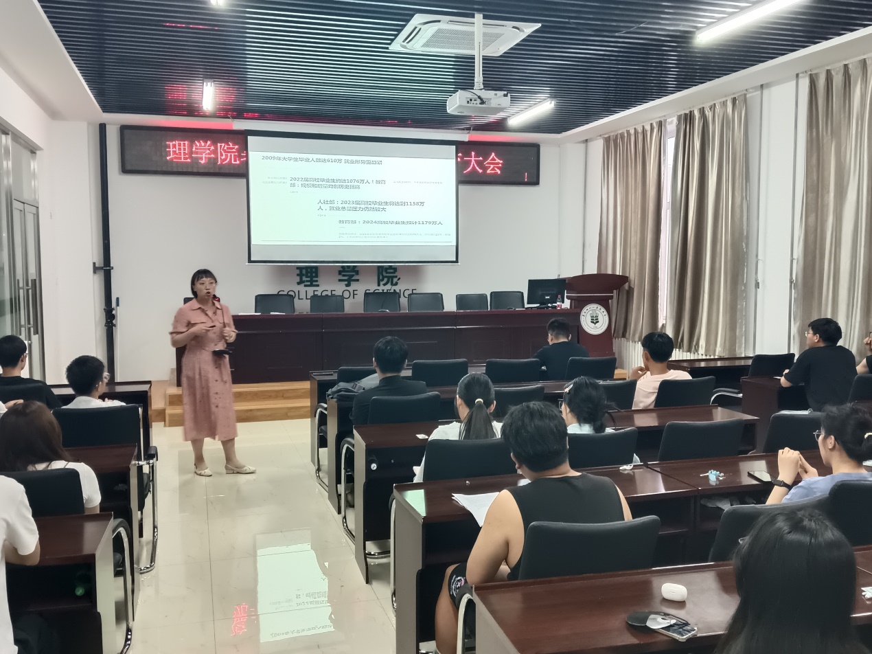 为有效促进2025届毕业生就业工作,引导学生树立科学的就业观、成才观和职业观。77779193永利官网于7月10日在基础实验楼620召开2025届应化专业毕业生就业动员大会,本次大会由学院党委副书记宋添星主持,副院长朱焕、辅导员及2025届毕业生参会。