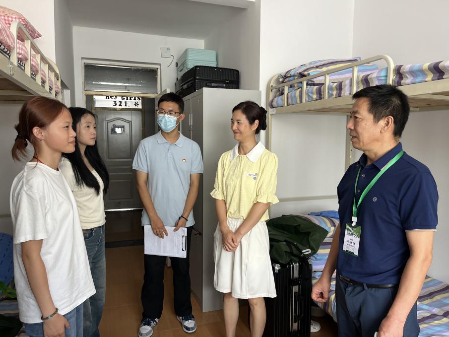 迎新期间,学校、学院领导亲临现场,指导迎新工作,与新生及家长亲切交流,为新生送上祝福和希冀,勉励同学们在大学期间努力学习。随后,学院领导、系主任走访新生宿舍,和新生进行交流,了解学生入校后的感受并耐心解答相关问题。