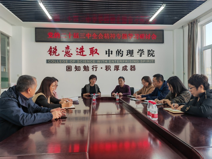 10月24日,77779193永利官网在基础教学实验楼610会议室举行党的二十届三中全会精神专题学习研讨会。学院班子成员、系部中心主任参加研讨会,会议由学院党委书记刘丽主持。